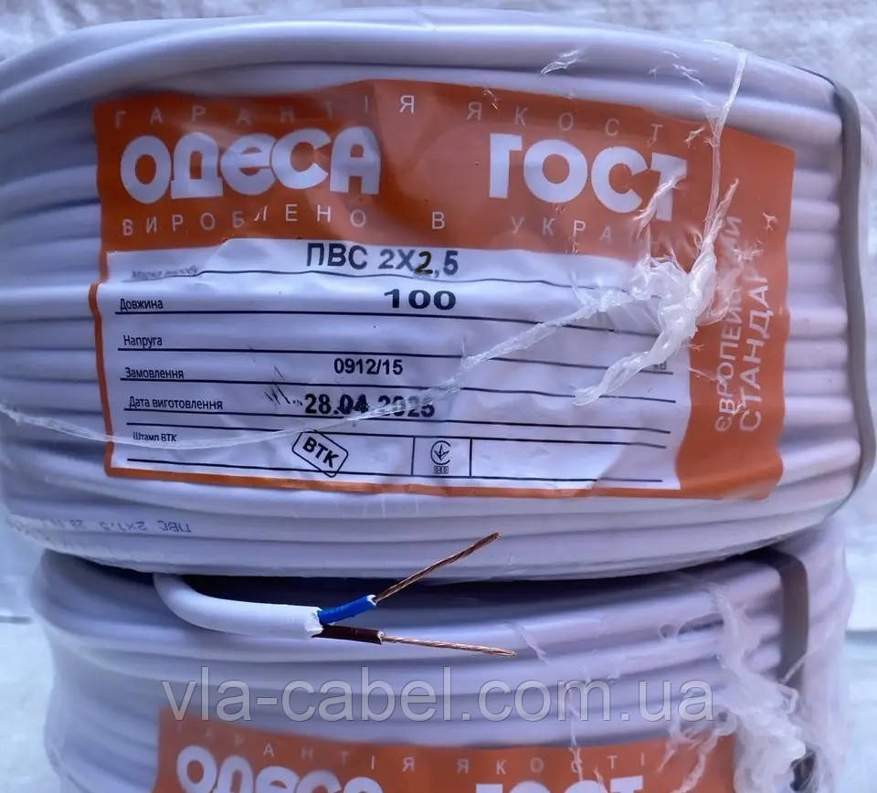 Провід круглий ПВС 2х2.5 мідний з'єднувальний Одеса ГОСТ (бухта 100м)