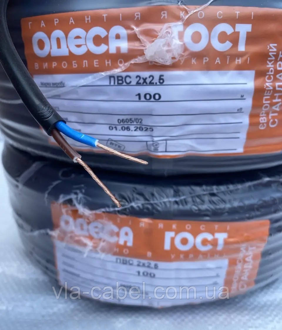 Провід гнучкий ПВС 2х2.5 чорний круглий Одеса ГОСТ ЄС (бухта 100м)